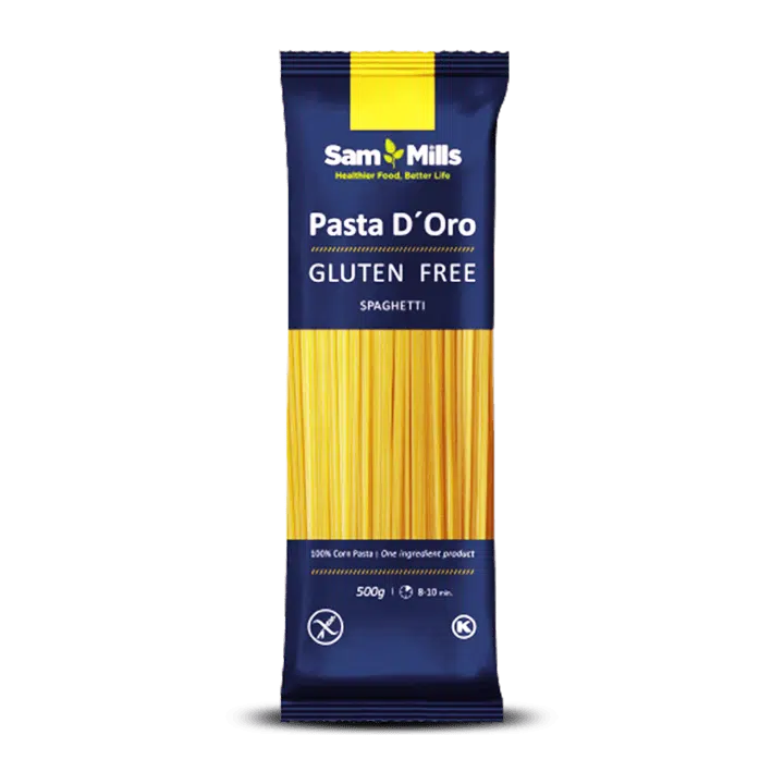 Les pâtes Pasta d’Oro de Sam Mills sont une alternative aux pâtes de blé. 100% naturel, Pasta d’Oro est totalement sans gluten, blé, œuf, soja et est faible en matières grasses, avec de nombreux avantages nutritionnels. Il ne contient que du maïs et de l’eau, avec des qualités supérieures qui préservent sa texture et sa saveur une fois cuit, ce qui ravira votre famille et vos amis. Les pâtes d’Oro sont plus faciles à digérer que les pâtes de blé, cuisent rapidement et peuvent être incluses dans toutes vos recettes préférées. Essayez et goûtez ces différences !